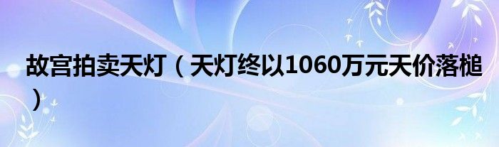 大家好,综合小编来为大家讲解下。故宫拍卖天灯,天灯终以1060万元天价落槌这个很多人还不知道,现在让我们一起来看看吧!