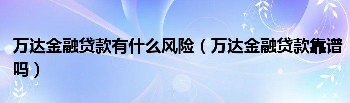 大家好,综合小编来为大家讲解下。万达金融贷款有什么风险,万达金融贷款靠谱吗这个很多人还不知道,现在让我们一起来看看吧!