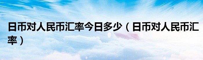 导读 大家好,综合小编来为大家讲解下。日币对人民币汇率今日多少,日币对人民币汇率这个很多人还不知道,现在让我们一起来看看吧!1、日币对人民