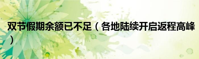大家好,综合小编来为大家讲解下。双节假期余额已不足,各地陆续开启返程高峰这个很多人还不知道,现在让我们一起来看看吧!
