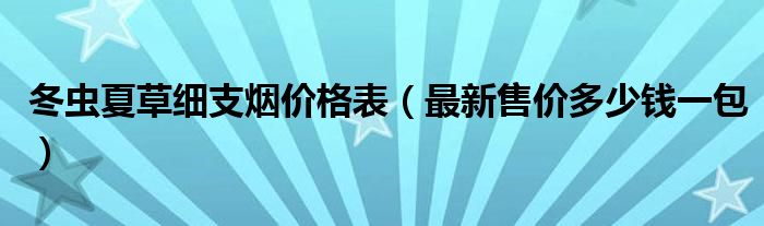 大家好,综合小编来为大家讲解下。冬虫夏草细支烟价格表,最新售价多少钱一包这个很多人还不知道,现在让我们一起来看看吧!