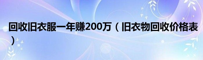大家好,综合小编来为大家讲解下。回收旧衣服一年赚200万,旧衣物回收价格表这个很多人还不知道,现在让我们一起来看看吧!