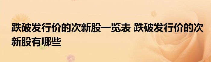 大家好,小元来为大家解答问题。跌破发行价的次新股一览表,跌破发行价的次新股有哪些,这个很多人还不知道,现在让我们一起来了解下吧!