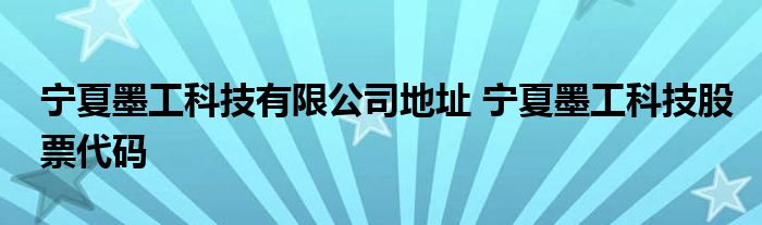 导读 大家好,小元来为大家解答问题。宁夏墨工科技有限公司地址,宁夏墨工科技股票代码这个很多人还不知道,现在让我们一起来了解下吧!