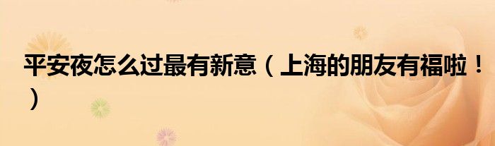 大家好,综合小编来为大家讲解下。平安夜怎么过最有新意,上海的朋友有福啦!这个很多人还不知道,现在让我们一起来看看吧!