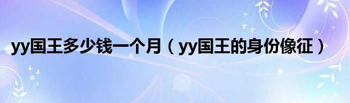 导读 大家好,综合小编来为大家讲解下。yy国王多少钱一个月,yy国王的身份像征这个很多人还不知道,现在让我们一起来看看吧!1、 yy是一个革命