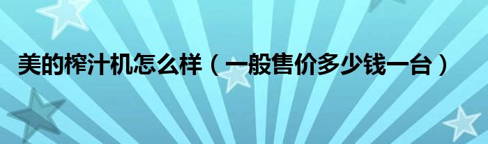 大家好,综合小编来为大家讲解下。美的榨汁机怎么样,一般售价多少钱一台这个很多人还不知道,现在让我们一起来看看吧!