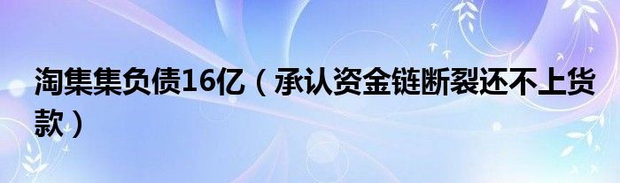 大家好,综合小编来为大家讲解下。淘集集负债16亿,承认资金链断裂还不上货款这个很多人还不知道,现在让我们一起来看看吧!