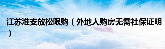大家好,综合小编来为大家讲解下。江苏淮安放松限购,外地人购房无需社保证明这个很多人还不知道,现在让我们一起来看看吧!