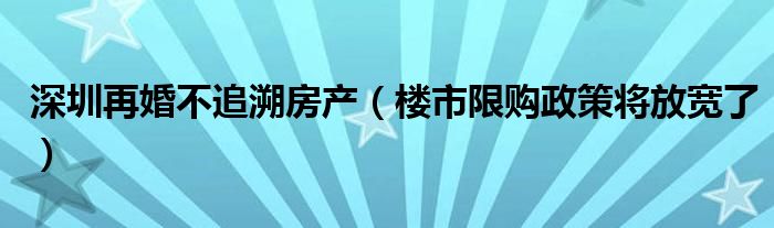大家好,综合小编来为大家讲解下。深圳再婚不追溯房产,楼市限购政策将放宽了这个很多人还不知道,现在让我们一起来看看吧!