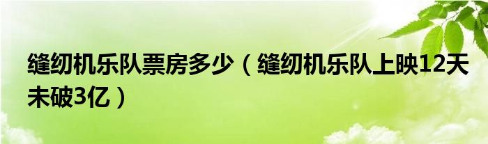 大家好,综合小编来为大家讲解下。缝纫机乐队票房多少,缝纫机乐队上映12天未破3亿这个很多人还不知道,现在让我们一起来看看吧!