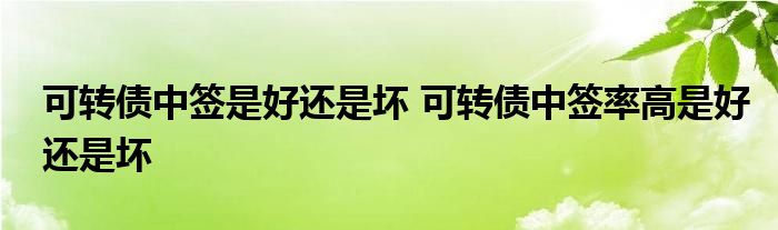 导读 大家好,小元来为大家解答问题。可转债中签是好还是坏,可转债中签率高是好还是坏,这个很多人还不知道,现在让我们一起来了解下吧!