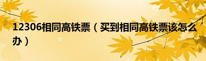 导读 大家好,综合小编来为大家讲解下。12306相同高铁票,买到相同高铁票该怎么办这个很多人还不知道,现在让我们一起来看看吧!1、买到相同车票的