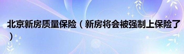 大家好,综合小编来为大家讲解下。北京新房质量保险,新房将会被强制上保险了这个很多人还不知道,现在让我们一起来看看吧!