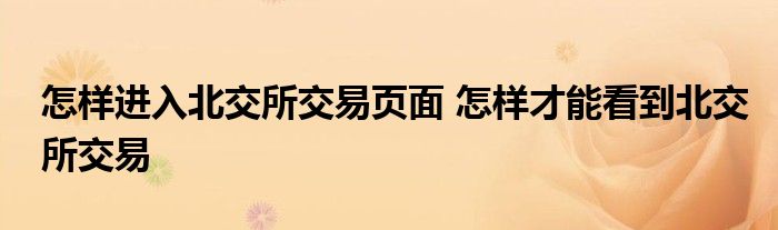 导读 大家好,小元来为大家解答问题。怎样进入北交所交易页面,怎样才能看到北交所交易,这个很多人还不知道,现在让我们一起来了解下吧!