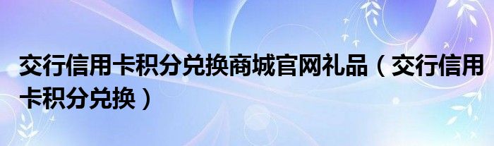 大家好,小卡来为大家解答以上问题。交行信用卡积分兑换商城官网礼品,交行信用卡积分兑换很多人还不知道,现在让我们一起来看看吧!