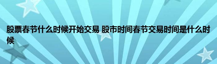 导读 大家好,小元来为大家解答问题。股票春节什么时候开始交易,股市时间春节交易时间是什么时候,这个很多人还不知道,现在让我们一起来了解下