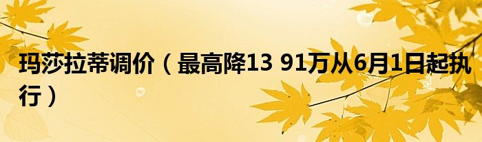 大家好,综合小编来为大家讲解下。玛莎拉蒂调价,最高降13 91万从6月1日起执行这个很多人还不知道,现在让我们一起来看看吧!