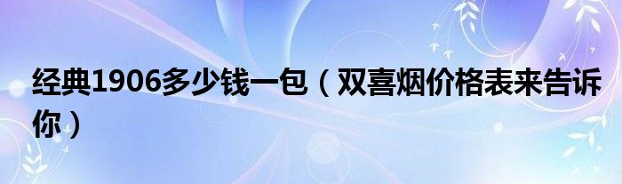 大家好,综合小编来为大家讲解下。经典1906多少钱一包,双喜烟价格表来告诉你这个很多人还不知道,现在让我们一起来看看吧!
