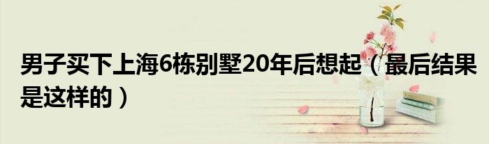 大家好,综合小编来为大家讲解下。男子买下上海6栋别墅20年后想起,最后结果是这样的这个很多人还不知道,现在让我们一起来看看吧!
