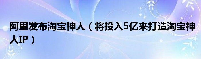 导读 大家好,综合小编来为大家讲解下。阿里发布淘宝神人,将投入5亿来打造淘宝神人IP这个很多人还不知道,现在让我们一起来看看吧!1、阿里巴巴成