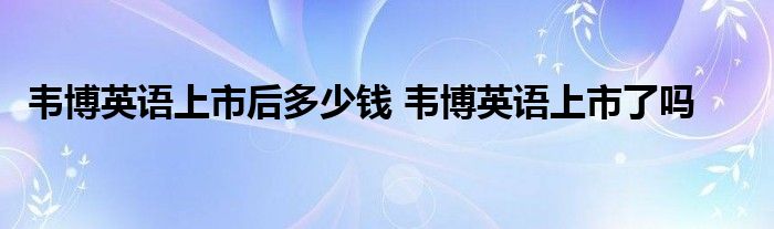 导读 大家好,小元来为大家解答问题。韦博英语上市后多少钱,韦博英语上市了吗,这个很多人还不知道,现在让我们一起来了解下吧!