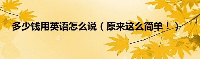 大家好,综合小编来为大家讲解下。多少钱用英语怎么说,原来这么简单!这个很多人还不知道,现在让我们一起来看看吧!