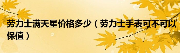 导读 大家好,综合小编来为大家讲解下。劳力士满天星价格多少,劳力士手表可不可以保值这个很多人还不知道,现在让我们一起来看看吧!1、说到满天