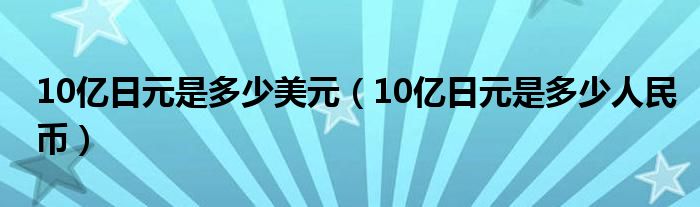 大家好,综合小编来为大家讲解下。10亿日元是多少美元,10亿日元是多少人民币这个很多人还不知道,现在让我们一起来看看吧!