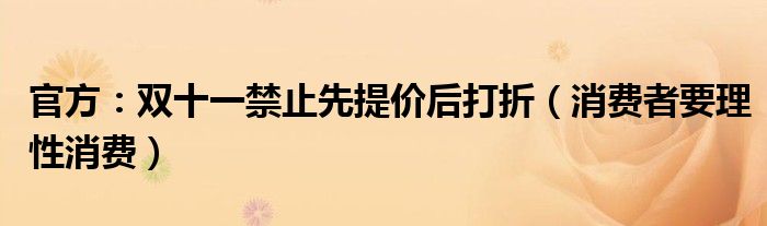 大家好,综合小编来为大家讲解下。官方:双十一禁止先提价后打折,消费者要理性消费这个很多人还不知道,现在让我们一起来看看吧!