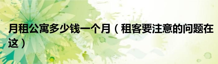 大家好,综合小编来为大家讲解下。月租公寓多少钱一个月,租客要注意的问题在这这个很多人还不知道,现在让我们一起来看看吧!