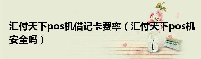导读 大家好,综合小编来为大家讲解下。汇付天下pos机借记卡费率,汇付天下pos机安全吗这个很多人还不知道,现在让我们一起来看看吧!1、据了解,