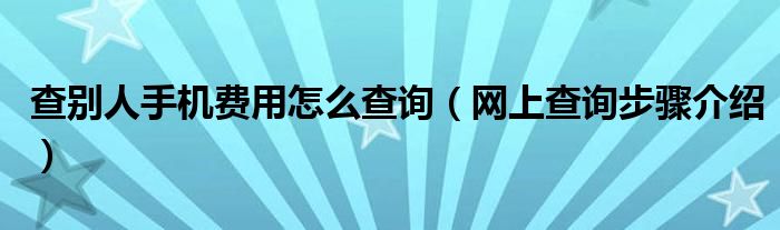 大家好,综合小编来为大家讲解下。查别人手机费用怎么查询,网上查询步骤介绍这个很多人还不知道,现在让我们一起来看看吧!