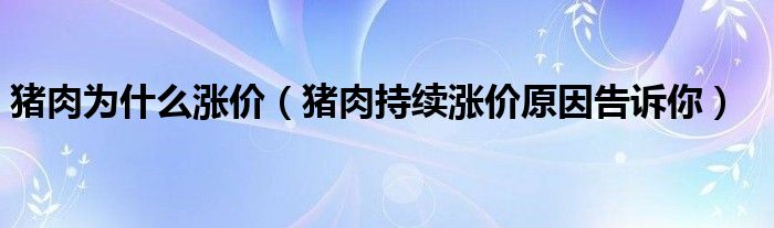 大家好,综合小编来为大家讲解下。猪肉为什么涨价,猪肉持续涨价原因告诉你这个很多人还不知道,现在让我们一起来看看吧!