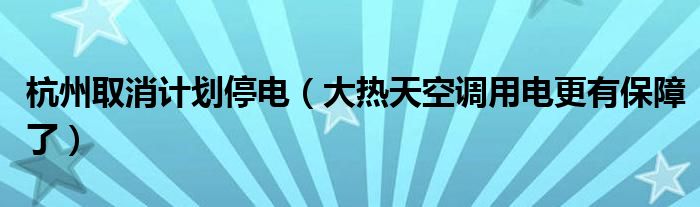 大家好,综合小编来为大家讲解下。杭州取消计划停电,大热天空调用电更有保障了这个很多人还不知道,现在让我们一起来看看吧!