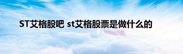 导读 大家好,小元来为大家解答问题。ST艾格股吧,st艾格股票是做什么的,这个很多人还不知道,现在让我们一起来了解下吧!