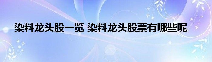 大家好,小元来为大家解答问题。染料龙头股一览,染料龙头股票有哪些呢这个很多人还不知道,现在让我们一起来了解下吧!