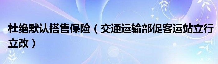 大家好,综合小编来为大家讲解下。杜绝默认搭售保险,交通运输部促客运站立行立改这个很多人还不知道,现在让我们一起来看看吧!