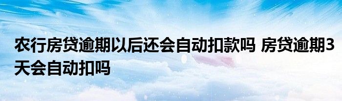 导读 大家好,小呗来为大家解答以上的问题农行房贷逾期以后还会自动扣款吗,房贷逾期3天会自动扣吗这个很多人还不知道,现在让我们一起来了解下吧