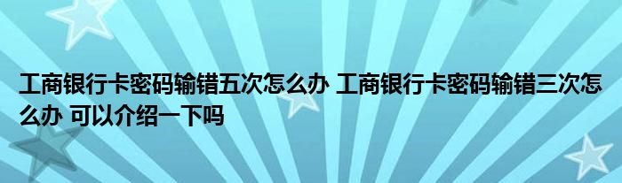 导读 大家好,小呗来为大家解答以上的问题工商银行卡密码输错五次怎么办,工商银行卡密码输错三次怎么办,可以介绍一下吗这个很多人还不知道,现在