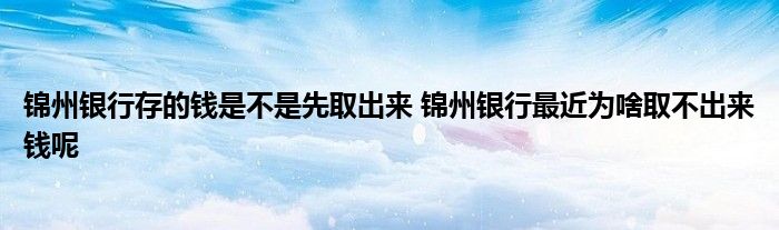 导读 大家好,小呗来为大家解答以上的问题锦州银行存的钱是不是先取出来,锦州银行最近为啥取不出来钱呢这个很多人还不知道,现在让我们一起来了解