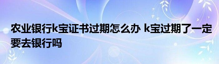 大家好,小呗来为大家解答以上的问题农业银行k宝证书过期怎么办,k宝过期了一定要去银行吗这个很多人还不知道,现在让我们一起来了解下吧!