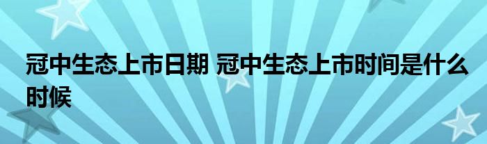 导读 大家好,小元来为大家解答问题。冠中生态上市日期,冠中生态上市时间是什么时候这个很多人还不知道,现在让我们一起来了解下吧!