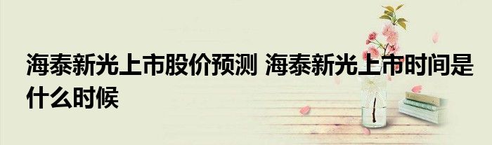 导读 大家好,小元来为大家解答问题。海泰新光上市股价预测,海泰新光上市时间是什么时候,这个很多人还不知道,现在让我们一起来了解下吧!