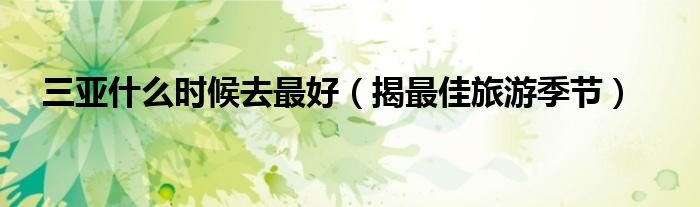 大家好,综合小编来为大家讲解下。三亚什么时候去最好,揭最佳旅游季节这个很多人还不知道,现在让我们一起来看看吧!
