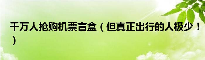 大家好,综合小编来为大家讲解下。千万人抢购机票盲盒,但真正出行的人极少!这个很多人还不知道,现在让我们一起来看看吧!