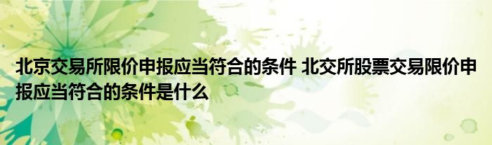 导读 大家好,小元来为大家解答问题。北京交易所限价申报应当符合的条件,北交所股票交易限价申报应当符合的条件是什么这个很多人还不知道,现在