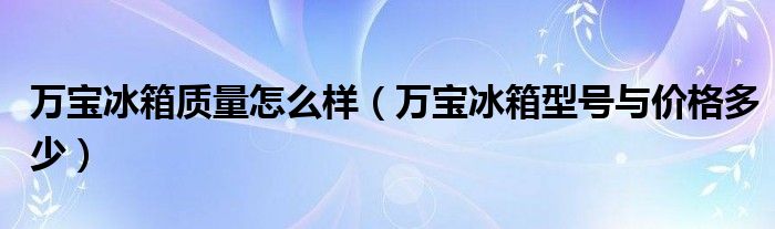 大家好,综合小编来为大家讲解下。万宝冰箱质量怎么样,万宝冰箱型号与价格多少这个很多人还不知道,现在让我们一起来看看吧!