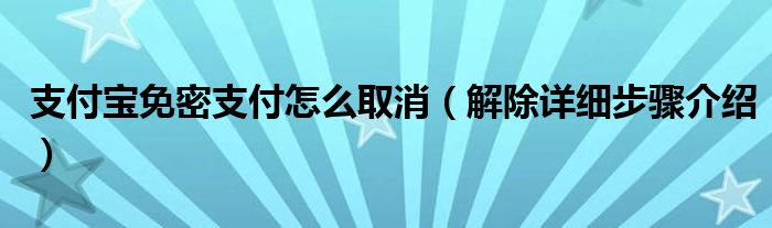 大家好,综合小编来为大家讲解下。支付宝免密支付怎么取消,解除详细步骤介绍这个很多人还不知道,现在让我们一起来看看吧!