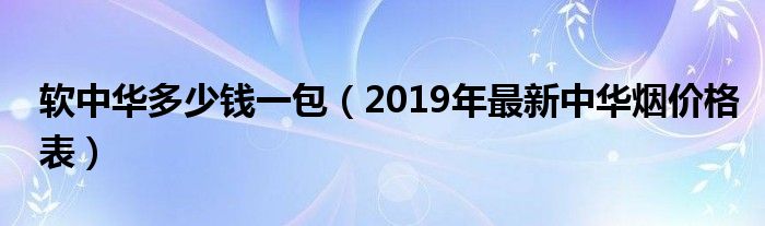 大家好,综合小编来为大家讲解下。软中华多少钱一包,2019年最新中华烟价格表这个很多人还不知道,现在让我们一起来看看吧!